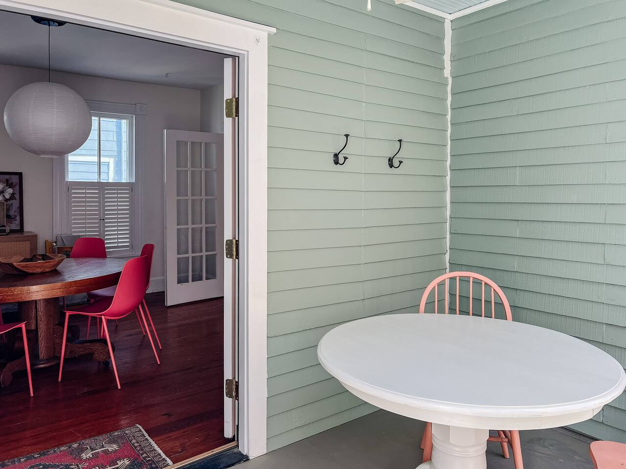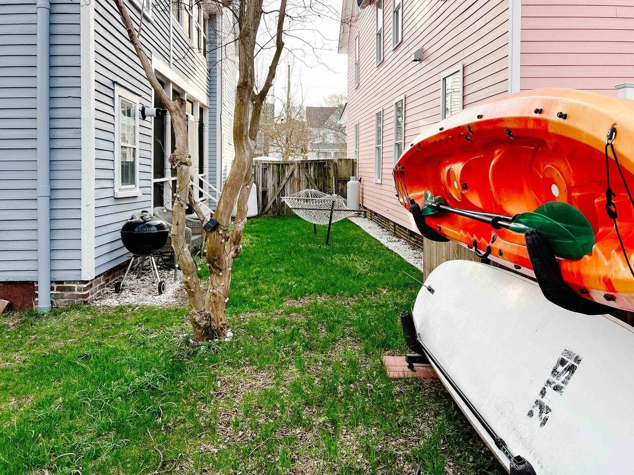 The Peach House is an iconic Cape Charles home that was featured in the New York Times as one of the first houses renovated as Cape Charles started to be rehabilitated a few decades ago. It was purchased on a credit card! That owner did a full rehab and built the kitchen cabinets and counters herself. We think Peach St. is about the best place to stay in Cape Charles as you are a half block to Central Park one way, downtown the other way (right next to AJ's and Deadrise Pies!) and a quick four blocks to the beach. Our family of five LOVES to come down whenever we can by ourselves or with friends and are sad to head home every time we leave! You will love spending time on one of the three porches in the home - we think the Peach House might be one of the last in Cape Charles to have both a downstairs and an upstairs screened porch. Prep a meal inside while the kids watch a show on the porch TV! A paddle board and kayak are in the backyard that you can pop in your car to enjoy on the bay.