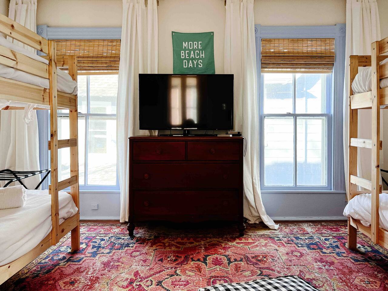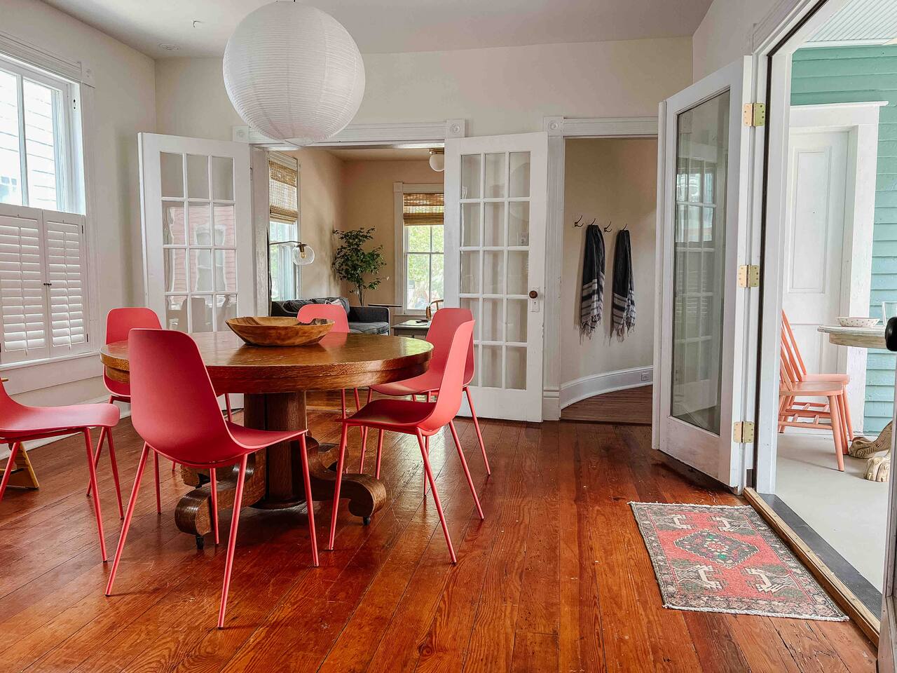 This is a HISTORIC home built in 1904 with quirks and charm so please be aware of this before booking. Here is our completely honest disclaimer so you know exactly what you are getting! • The full bathroom upstairs is attached to the bedroom at the top of the back staircase. When multiple families stay, guests in the front bedroom will likely go downstairs and use the half bath at night. We hope to turn the tiny bedroom in the front of the home into a bathroom in the future. • The only shower and tub inside are in the upstairs full bath. In the summer, this does not seem to be a big deal as most guests take advantage of the outdoor shower. However, in the colder months, please be aware of this if multiple families are staying in the home. • The kitchen is also on the list to be remodeled – it works fine right now, but does not have a dishwasher. • It’s also a historic home – being at the beach the floors sometimes get a little dusty and are a little squeaky. Occasionally, there will be bugs inside – again – it’s an older house at the beach and please expect some of these things as part of the charm! • We also had one person complain that we do not have china – we thought at first they meant Chinese food in town – however they meant fine china. Mostly including this in our disclaimer because we thought it was funny, however please know that we have cool kitchen dishes, but they are not … china. • Finally – know that our cleaning fee is less than what our cleaner actually charges. Please be aware of this if you book – especially in the off season when you have the chance to book for killer rates as we like to allow as many people as possible to get to enjoy one of our favorite places! We have the best cleaner on the Shore working with us, however it is hard to find reliable people in this somewhat remote location. Hopefully that’s why you’re pumped to stay in Cape Charles anyway … We’ve had a few people with different expectations stay with us and we do not want that to happen to you! We LOVE our beach house on Peach Street and cherish the times we get to come stay. If you’re still as excited as we are to stay at The Peach House after reading these notes, we think you will fall in love with it and Cape Charles, too!!