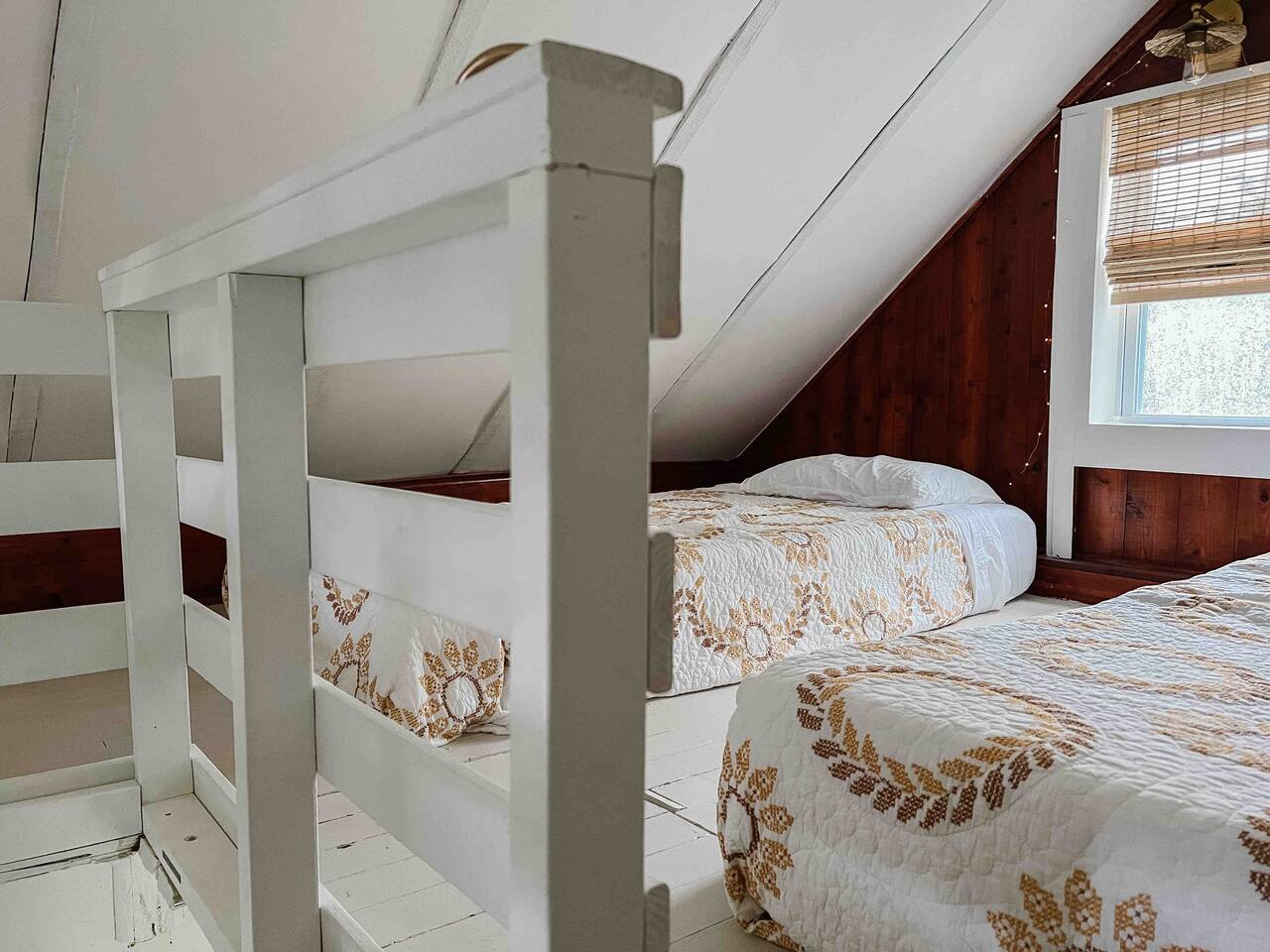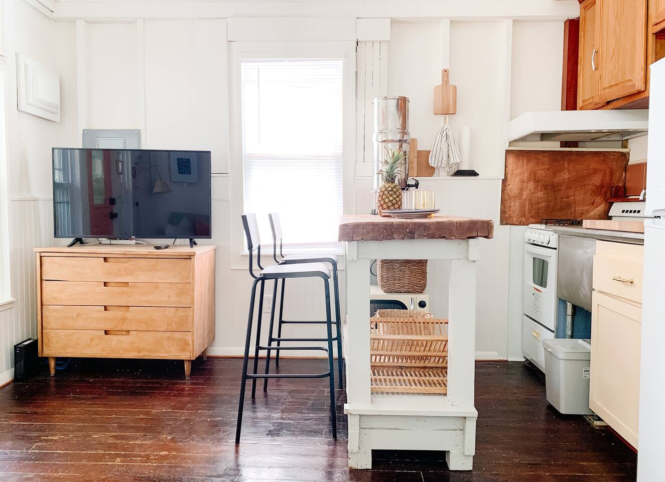 This is an older home with quirks and charm so please be aware of this before booking. Here is our completely honest disclaimer so you know exactly what you are getting! • The sleeping loft with twin beds is accessed by a small, narrow staircase without a lot of headroom. Please use caution with it and know that it is not ideal for young children or those with difficulty climbing stairs. It is a super cool space but quirky! A lot of the time we have couples stay (which this house is perfect for) who don’t use the loft. For a small family like ours, our young kids LOVE getting to camp out up in the loft. • We are five blocks from the beach, so the space is best experienced either anticipating a short drive to the beach, or by planning on renting bikes or a golf cart which makes exploring historic Cape Charles super fun! • It’s a tiny house and the only one of its kind in Cape Charles … but … it is a TINY house. We love the little kitchen; however, it is not ideal for cooking a big meal. The shower is small as is the bathroom sink. We enjoy the space with our family of five, but definitely have to squeeze in! • It’s also a historic tiny house. Being at the beach the floors sometimes get a little dusty and, in the fall, leaves blow up on the patio. Occasionally, there will be bugs inside – again – it’s an older house at the beach and please expect some of these things as part of the charm! • The back sliding glass door is secured with a pole that slides in the bottom of the door. Just including this because we had one person complain (loudly) about this. • Finally – know that our cleaning fee is less than what our cleaner actually charges. Please be aware of this if you book – especially in the off season when you have the chance to book for killer rates as we like to allow as many people as possible to get to enjoy Summer Camp! We have the best cleaner on the Shore working with us, however it is hard to find reliable people in this somewhat remote location. Hopefully that’s why you’re pumped to stay in Cape Charles anyway … We’ve had a few people with different expectations stay with us and we do not want that to happen to you! We LOVE our tiny house and cherish the times we get to come stay. If you’re still as excited as we are to stay at Summer Camp after reading these notes, we think you will fall in love with it and Cape Charles, too!!
